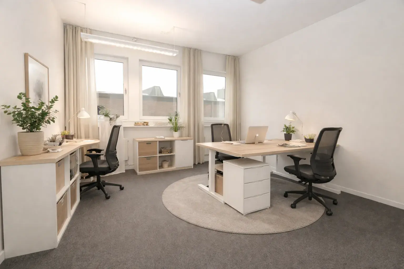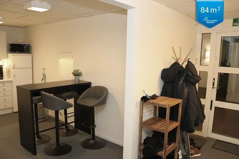 Komplett och väldisponerad kontorslokal på 84 kvm en trappa upp i byggnaden som även har hiss. Lokalen har egen ingång, två WC, separat dusch, förråd samt pentry och två väl tilltagna kontorsrum som ger flexibilitet när det gäller antalet arbetsplatser.
